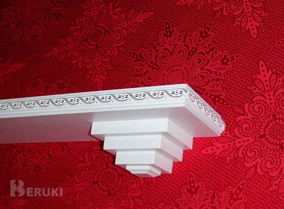 Полка прямая с декоративными консолями (собственное производство) изготовлена из МДФ, загрунтована и окрашена. Инкрустирована декоративным молдингом. Размеры: длина 60 см, высота 6 см, глубина 10 см. Размеры по желанию заказчика можно изменить!