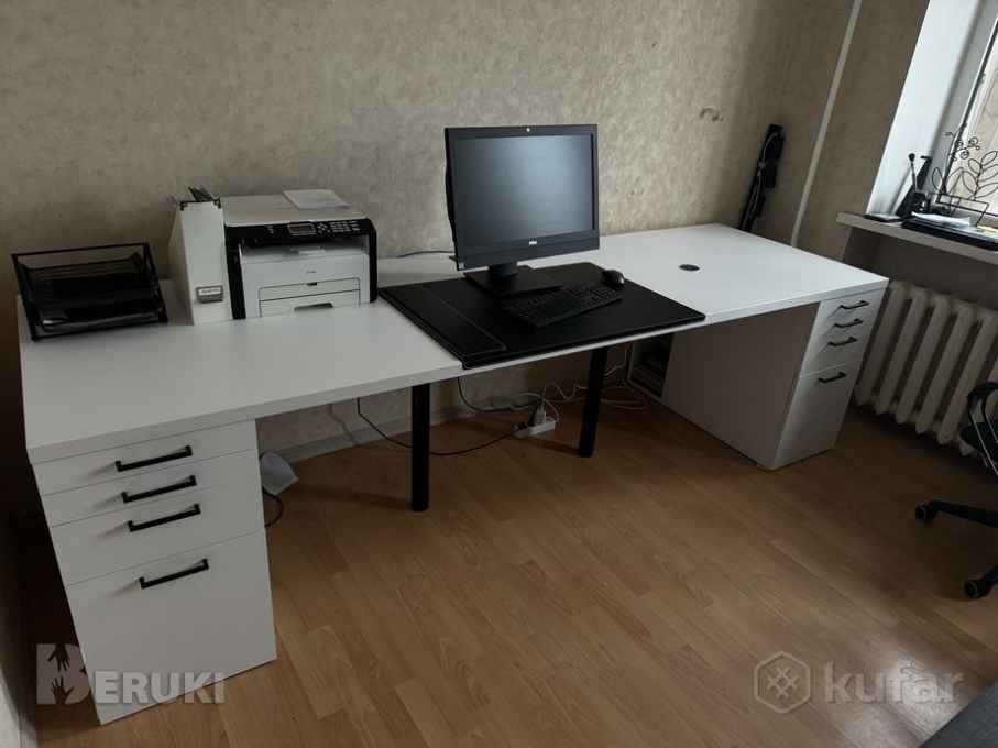 Размеры стола: Ш 2750 x Г 900 x В 800 ммЗаказывался по своему проекту в ML_SMART. В связи со сменой работы надобность в большом столе отпала (раньше стоял iMac и 2 монитора 27). Подойдет удаленщикам, детям, программситам или руководителю. Делалось все для себя из качественных материалов на заказа. Торг минимальный . Есть навесные полки Самовывоз - как минимум 2 здоровенных мужчины (столешница весит под 150 кг).Материал EGGER, проклейка кромок PURE клеем.Фурнитура покупалась в WestLine.Направляющие с доводчиком GTV.Ручки BOYARD алюминиевые.Ножки INNOVA GTV.Кабель канал IKEA.Кабельпропуск MERIDA.Зарядная Беспроводная станция 7.5 Watt покупалась в Польше, производителя не помню.