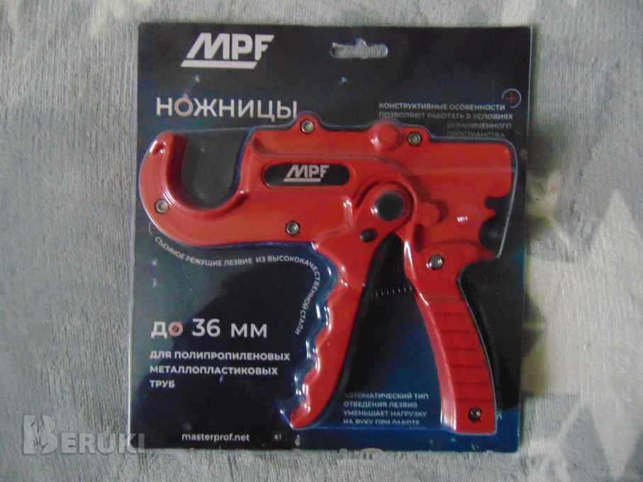 Ножницы для резки металлополимерных труб MPF до 36 мм, пистолет предназначены для резки металлопластиковых и полипропиленовых труб, максимальный диаметр которых 36 мм. Корпус ножниц металлический, режущее лезвие одно, после отрезания трубы автоматически возвращается в исходное положение.
