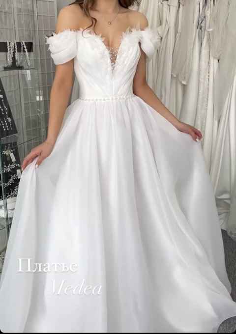 Свадебное платье А-силуэт . Приобреталось на заказ в салоне Fler. Платье очень лёгкое и нежное с пояском из жемчуга и нежные цветочки дополняют декольте с бусинками из жемчуга . Платье подходит на рост 155-167 .Размер 42-44 .