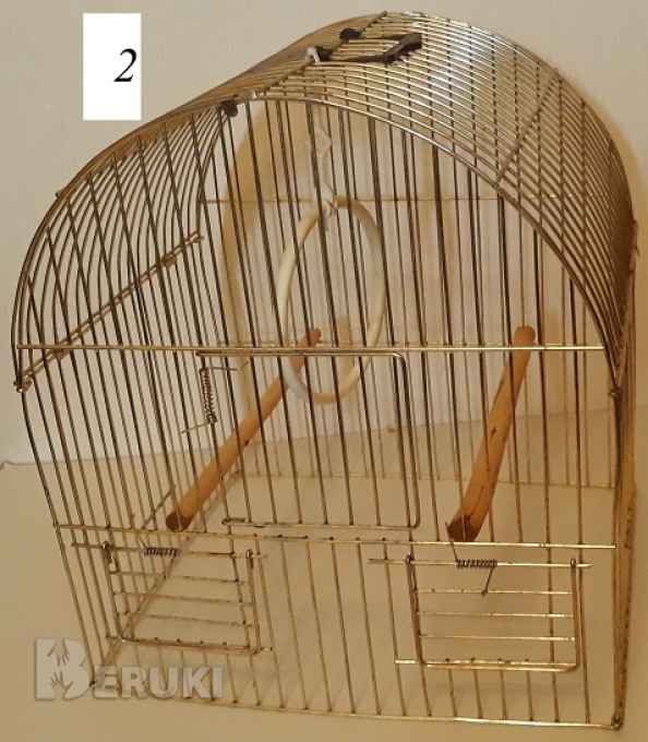 2- для малых птиц, б/у, металлическая (без поддона), цвет – золотистый, размеры – 32см высота, 28см ширина, 23,5см глубина; пружинный дверки (3 шт), ручка для переноски, 2 палочки круглые и пластмассовый подвесной круг для сидения птиц, сделана санитарная обработка, в отличном/хорошем состоянии. Цена 15 рб.