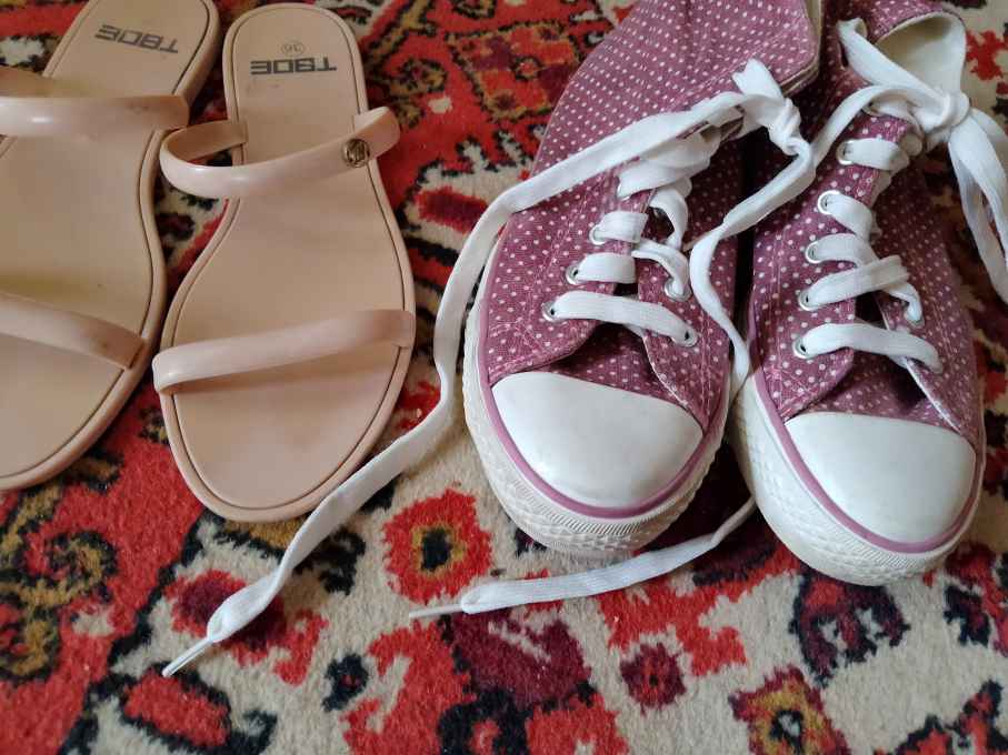 Кеды в горошек, одеты 2 раза, по стельке 235, в подарок сланцы