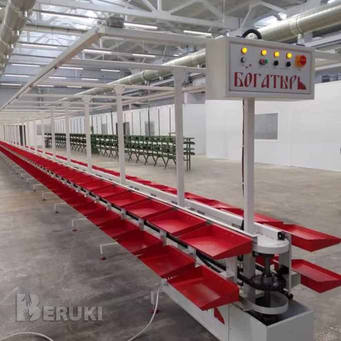 Обувной конвейер свободного цикла, разработанный компанией MOZES INC на основе тщательного обобщения многолетнего производственного опыта и требований, которые выдвигаются современной производственной технологией, являются незаменимым средством механизации.Конвейер данного типа характеризуется следующими преимуществами:Экономия производственной площадиХороший обзор производственного процессаВозможность силового подключения приконвейерных рабочих машин непосредственно к кабельному разводу конвейераМаксимальная возможность применения индивидуальной квалификации рабочегоСокращение транспортных путейИсключение из потока ручного промежуточного транспортераИсключение межсменных потерь времениСвободный ритм работыСокращение рабочих движенийВысокая степень унификации составных частей и узловПростота в обращении и обслуживанииСостав конвейера:Приводная станцияНатяжная станцияПанель оператораДвухъярусные лотки (люльки)Освещение всего периметра длины конвейераЧастотный преобразовательДвигатель 380 ВДоп функции:Кабельный развод силового подключения (220 В, 380 В и систем автоматического отключения при замыкании эл. цепей )Данные показывают, что применив в легкой промышленности указанный конвейер, возможно повысить производительность труда от 15% до 25 %Стоимость конвейера зависит от Ваших производственных потребностей (длинна - количество рабочих мест, комплектация, оснащение доп. функциями), в этой связи наши инженера рассчитают согласно Вашего технического задания.Оборудование находится на складе в России, Калужская обл., Дзержинский р-н, с. Льва Толстого, ул. 1 Мая, 21Доставка до транспортной компании осуществляем своим транспортом, бесплатно.