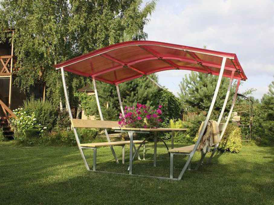 Добрый день, представляю вашему вниманию дачную беседку, которая определенно займет вместо на участке вашего частного дома, либо частного дома. Беседка выполнена из такого материала как: - материал каркаса состоит из профильной трубы размером 20x20 мм, толщиной 1.8 мм; - материал крыши состоит поликарбонат размером 3x1.8 м, толщиной 4м; - материал стола и лавочек состоит из строганной доски. Цветы крыши вы выбираете только под ваш вкус, на выбор имеются такие цвета как: - зеленый;- вишня;- коньяк. Размеры беседки:- ширина (по основанию) -1,73м; - ширина (по верху) - 2,43м; - высота - 2,02м;- длина- 1,9м. В комплект к беседку идет - 6 шт. якорных свай. Оплата за беседку проводится определенно по договоренности, в оплату входит - цена за беседку + доставка