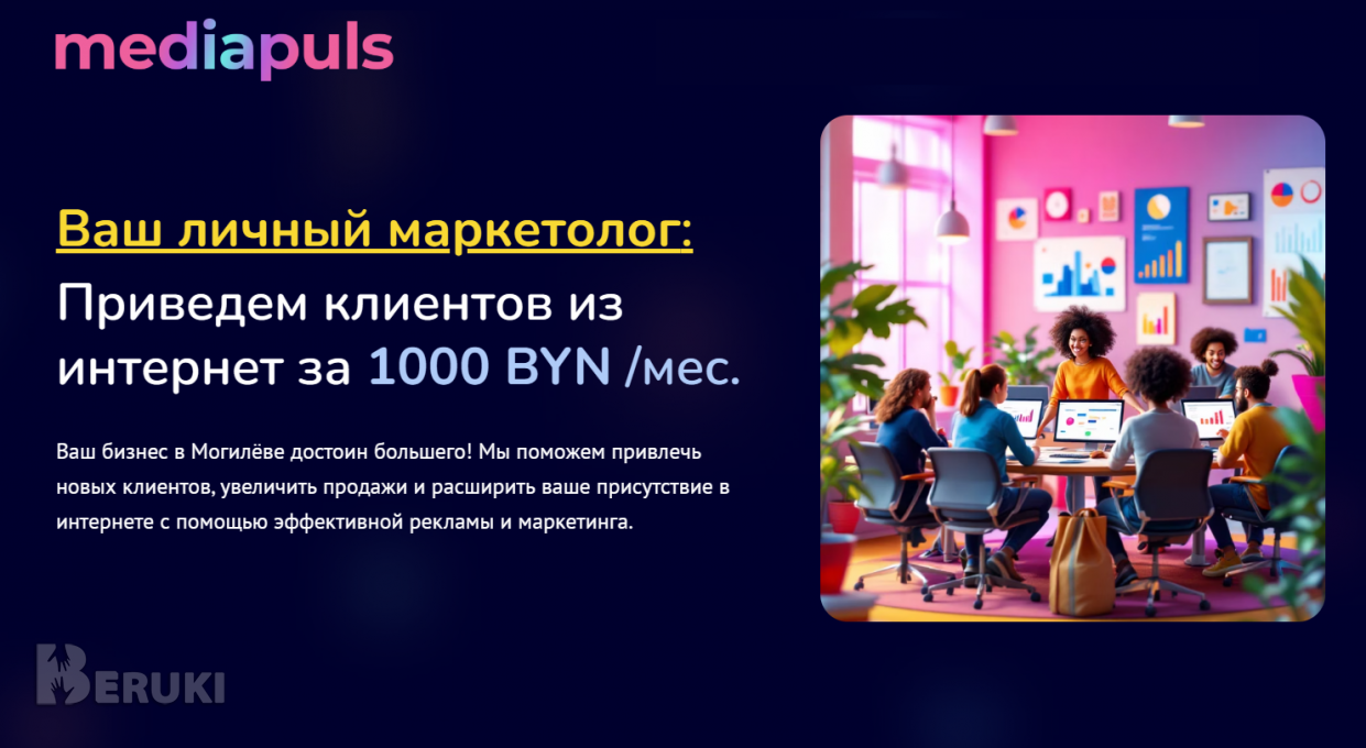 Ваш бизнес в Могилёве достоин большего! Мы поможем привлечь новых клиентов, увеличить продажи и расширить ваше присутствие в интернете с помощью эффективной рекламы и маркетинга. . Наше предложение: полный маркетинг "под ключ" за 1000 рублей в месяц.