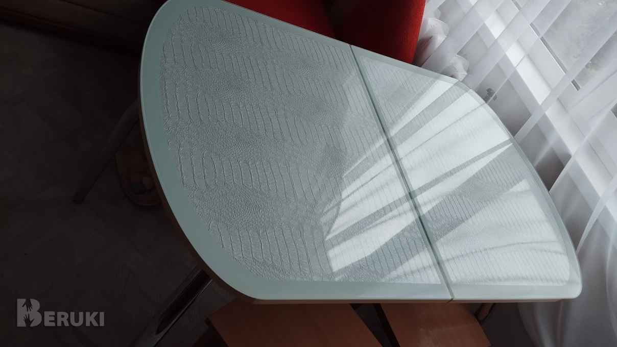 Стол овальный белый (стекло)размер 110+30см раздвижной овальный