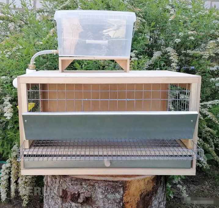По желанию можно установить ниппельную поилку и ёмкость для воды.