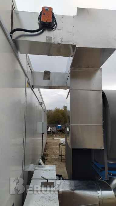 Сушильный комплекс СК-27ТГ300 состоит из 2-х проточных сушильных камер, изготовленных на базе 2 изотермических автомобильных б/у изотермических контейнеров. Габаритные размеры камер: 13,54*2,6*2,83+13,63*2,6*2,81.