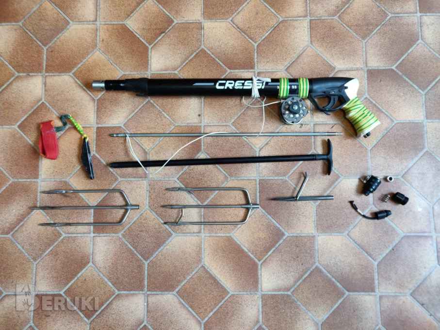 Ружьё подводное CRESSI SAETTA 55 без регулятора боя и всё остальное к нему. На стреле резьба М7, хвостовик обточен под новый оголовок компенсатора. Есть возможность вернуться к старому оголовку. Не битое и без вмятин, всё работает и держит давление. Всё продаётся как есть и вместе.