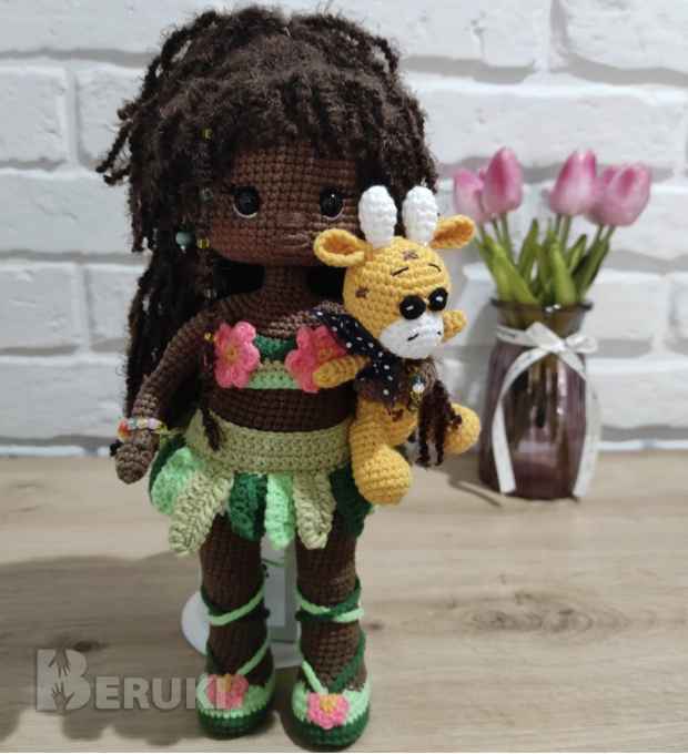 Кукла ручной работы. Купальник и юбочка съемные. К кукле идёт маленький жирафик