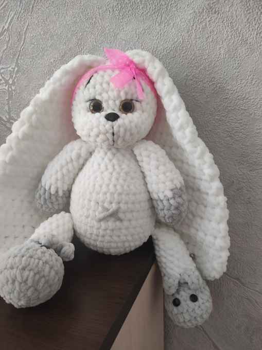 Мягкая игрушка Зайка. Выполнена из плюшевой гипоаллергенной пряжи. Мягкая , как облако.