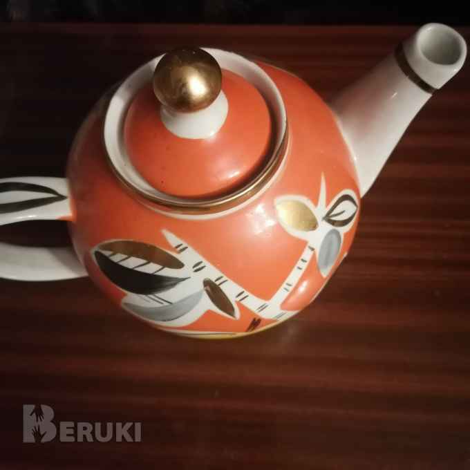 Это фарфоровый чайник «Золотое яблоко» Полонского фарфорового завода.Произведен в СССР.Имеет шарообразную форму и оранжево-белый цвет.Украшен декоративной композицией с элементами позолоты.Объем составляет 1 литра. В эксплуатации небыл стоял все время в стенке, как ваза. Пересылка почтой или еврапочтай по предоплате за ваш счёт.