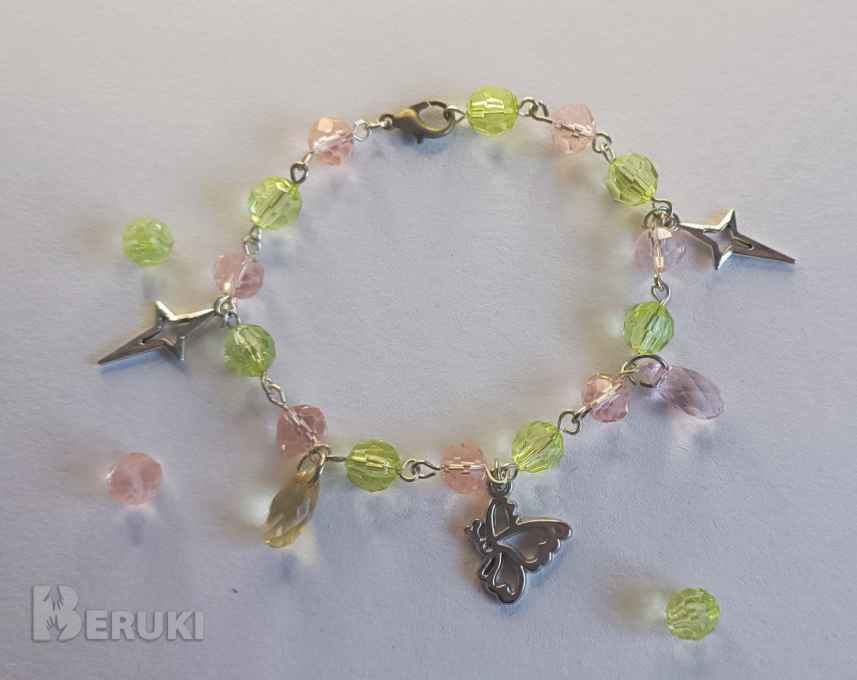 Нежный зелено-розовый браслет с подвесками с весенним вайбом