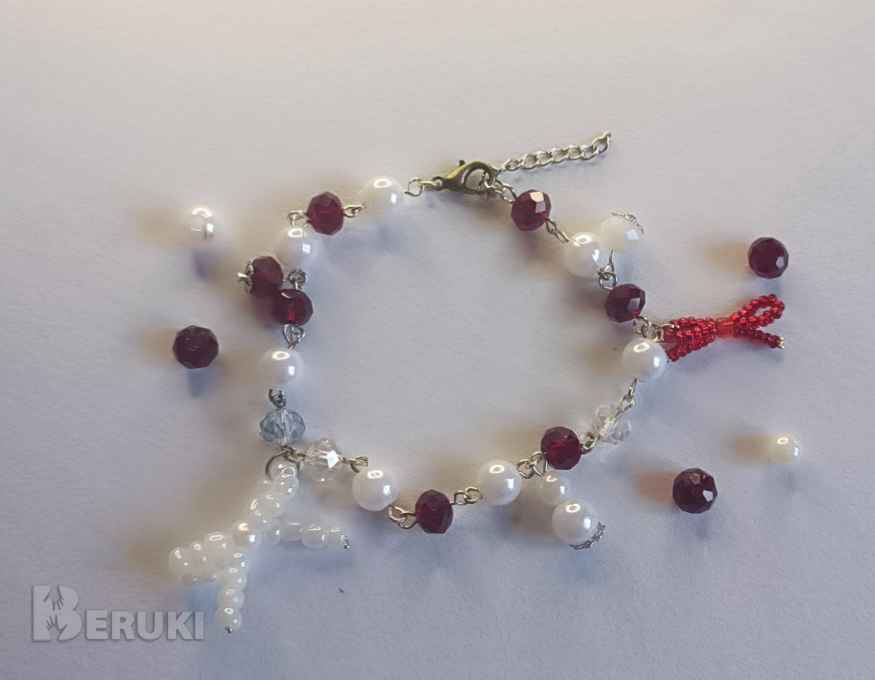 Бордово-белый браслет с бантиками ручной работы