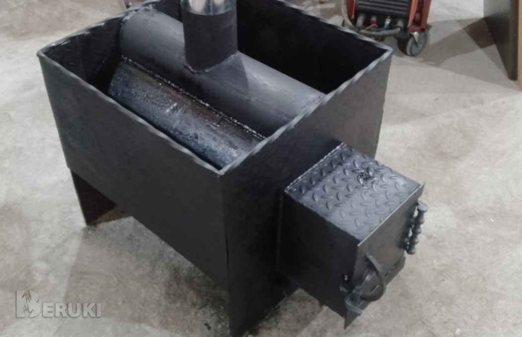 Печь для бани выполнена из толстостенной трубы толщиной 8 мм, что значительно увеличивает срок её эксплуатации.