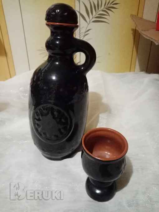 Кувшин с бокалом керамика. На пробке есть скол.