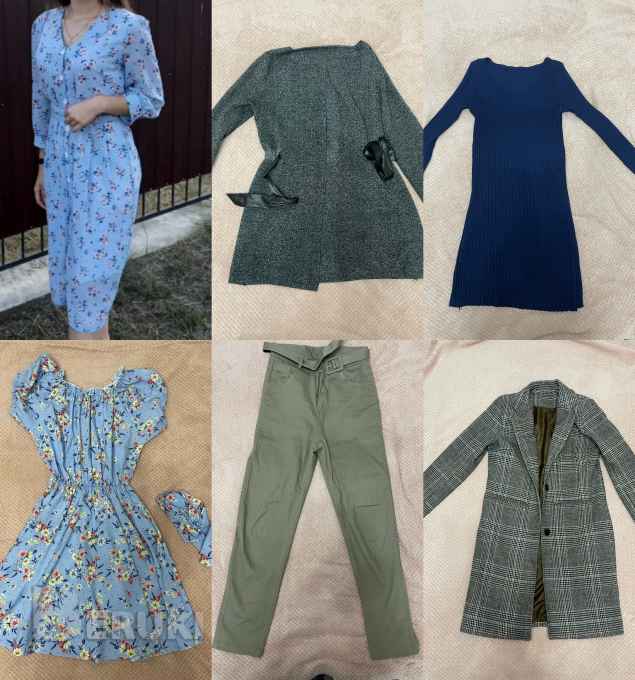 Вещи разные. Размер 42-44. Отправлю почтой. Платья и штаны 7р, пальто 15р