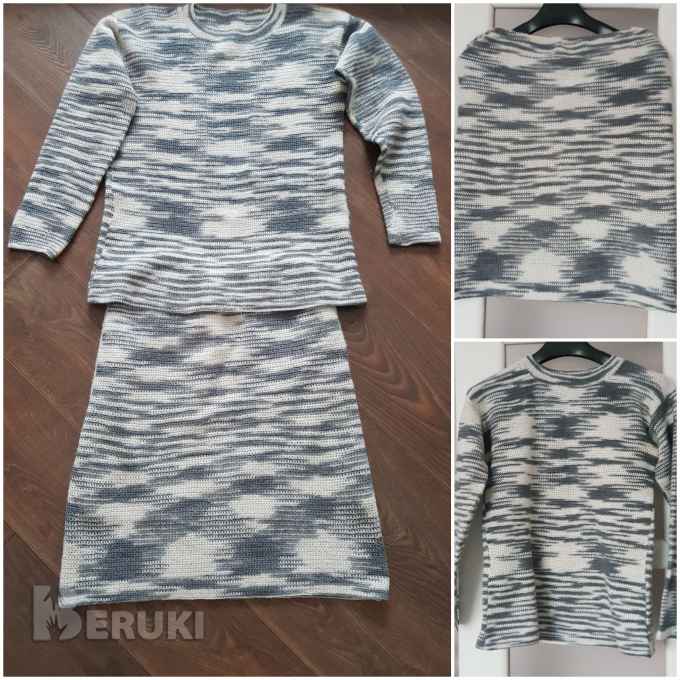 Костям вязанный 48 размера, ручная работа (крючок), пряжа меланж, шерсть. Длина юбки 60 см, юбка на подкладке, длина свитера 65 см. Почта, европочта