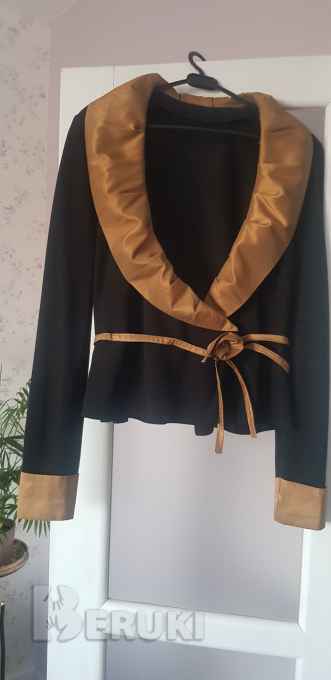 жакет из тонкой шерсти черного цвета, отделка -цвет мокрого песка, размер 48, почта, европрочта