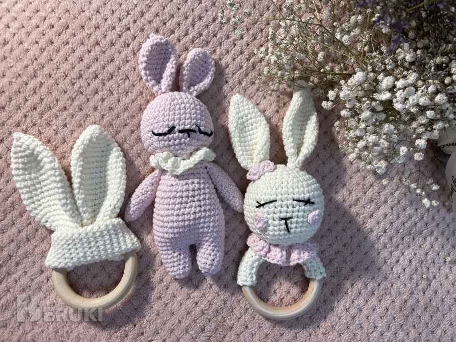 Зайка розовый 17см, погремушка ( с гремелкой внутри) зайка 20см, грызунок 15см. Отправлю почтой европочтой или белпочтой.